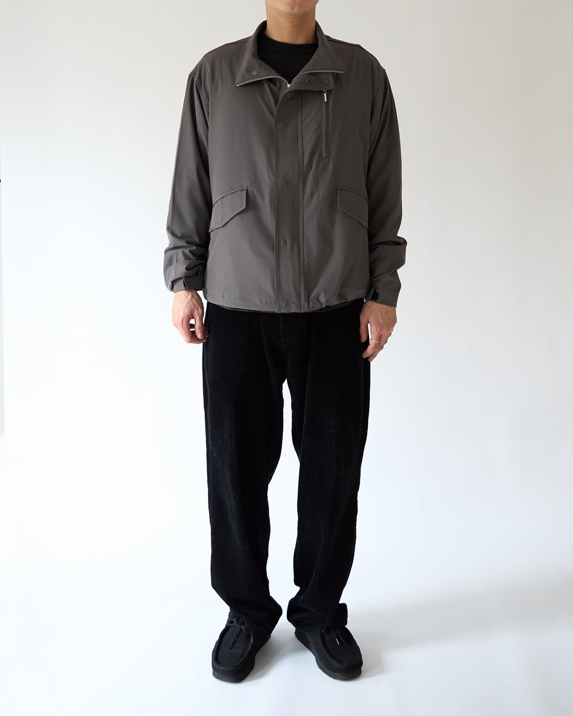 フランス軍のM-64フィールドジャケットをベースに、現代的なバランスで再構築したスタンドカラージャケット。