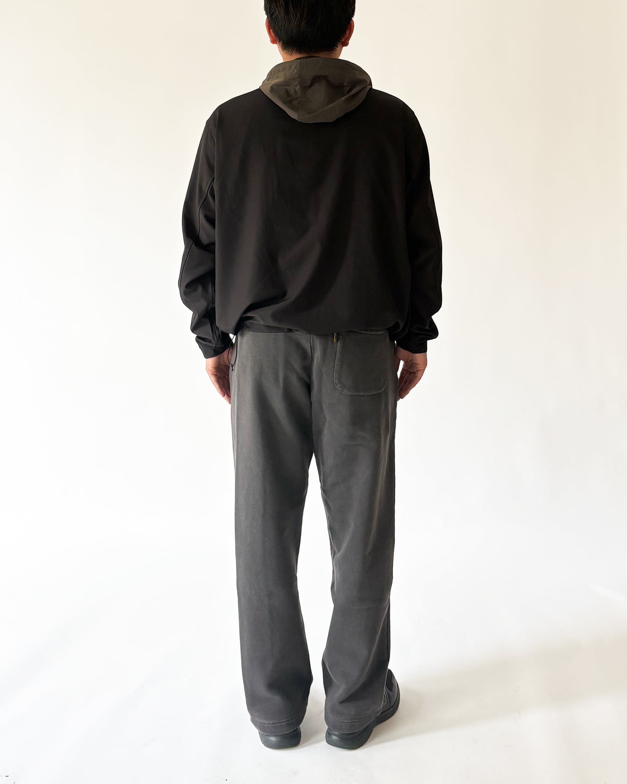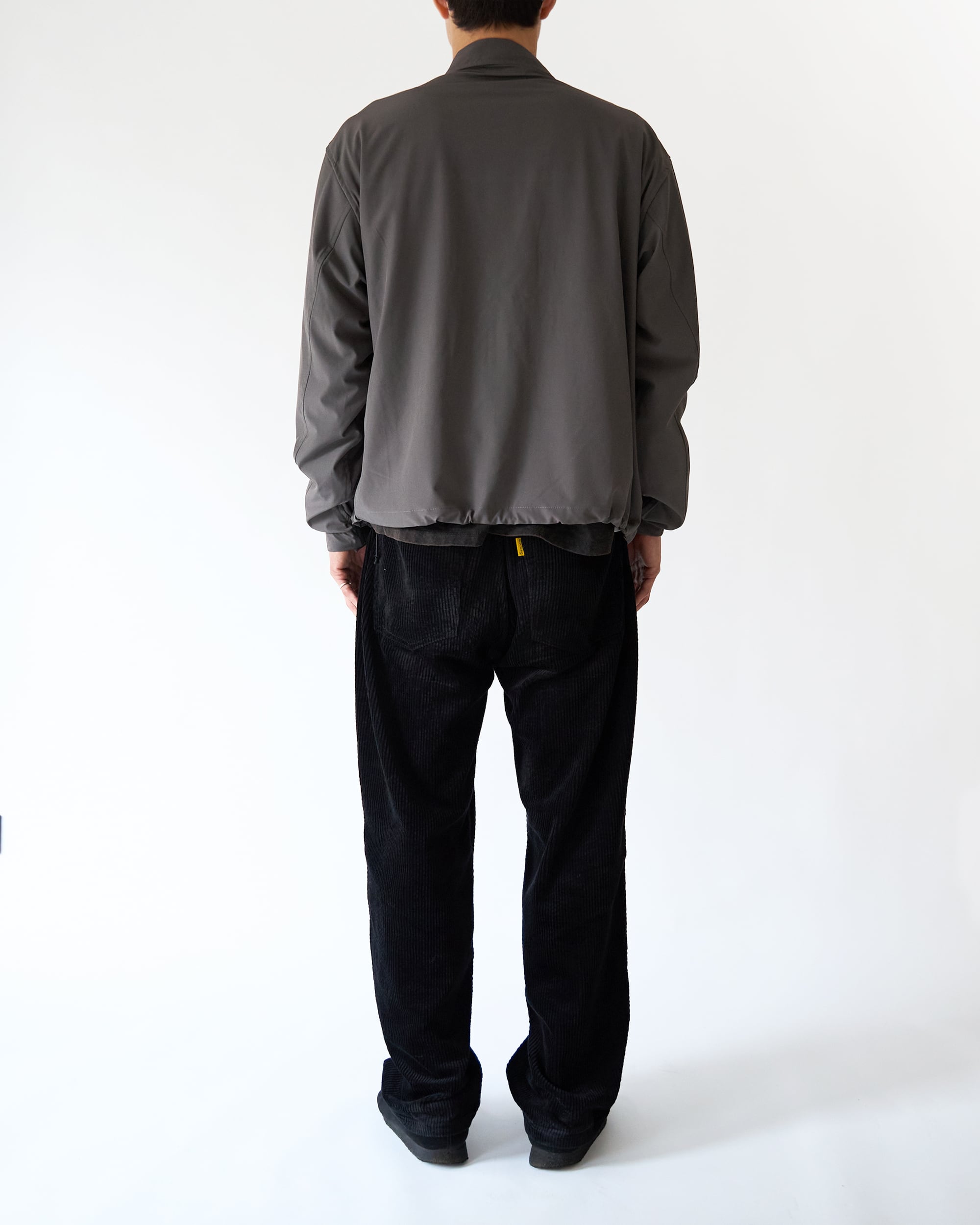 裾にはドローコードを配し、シルエットを絞ることでスタイリングに変化をつけられます。