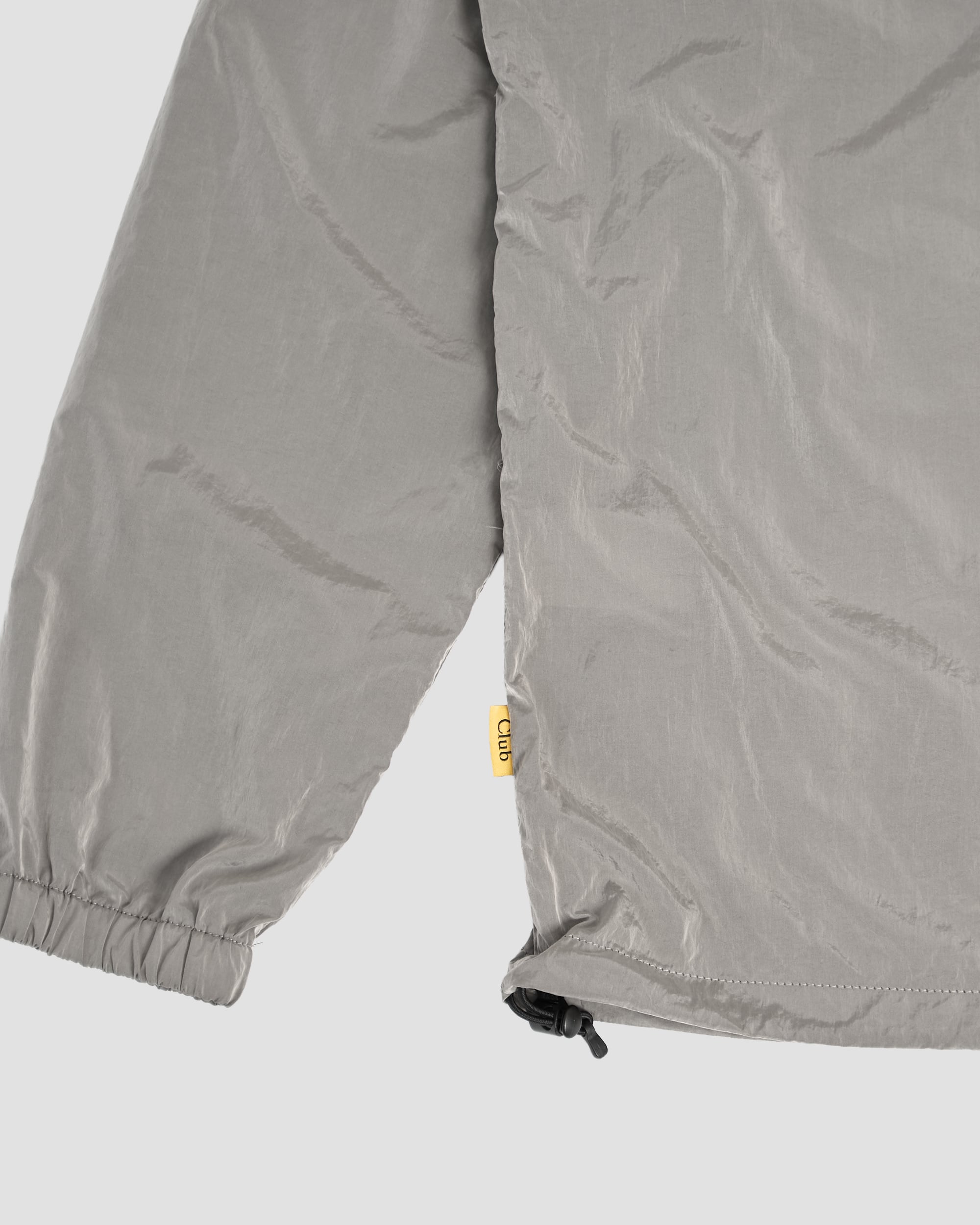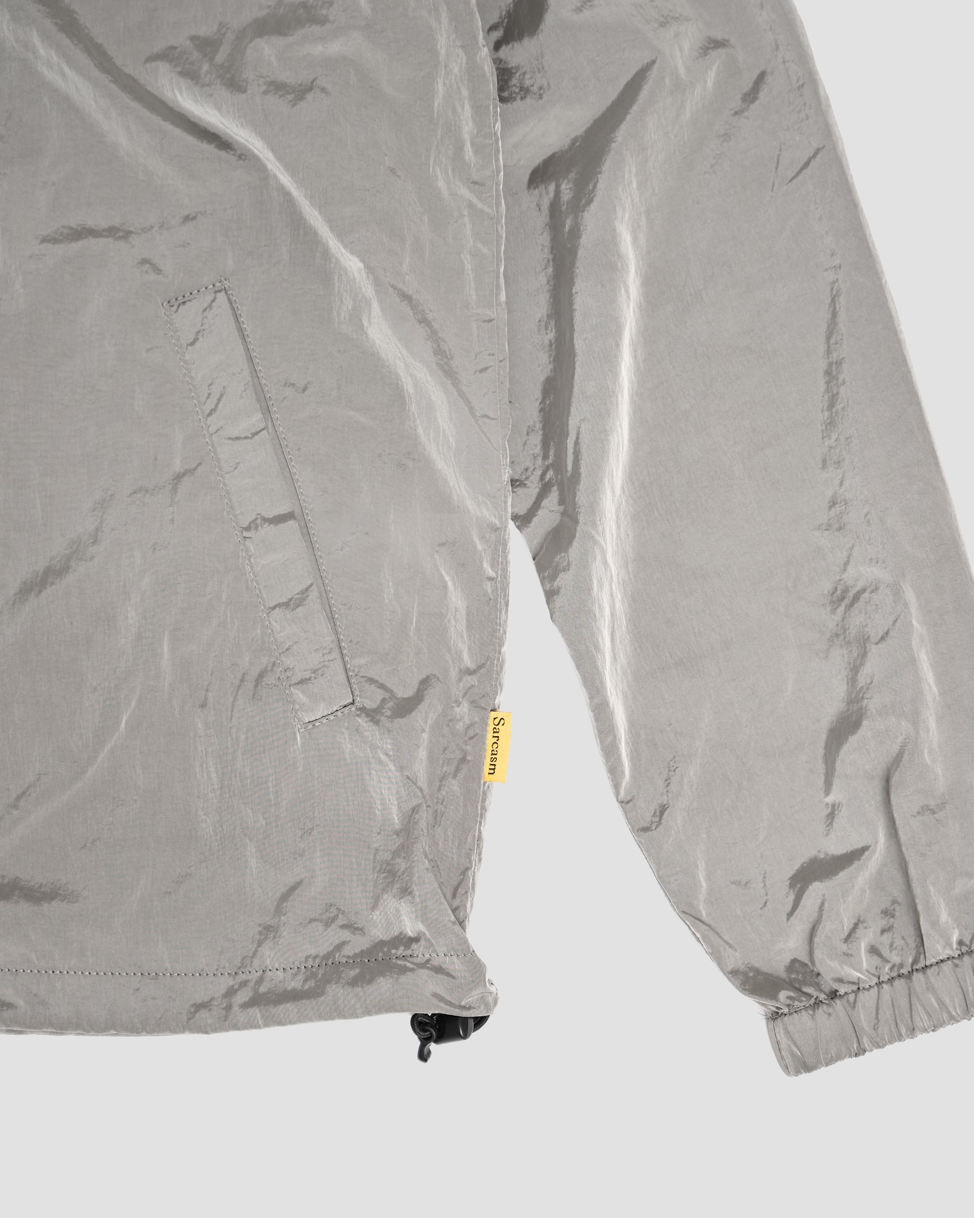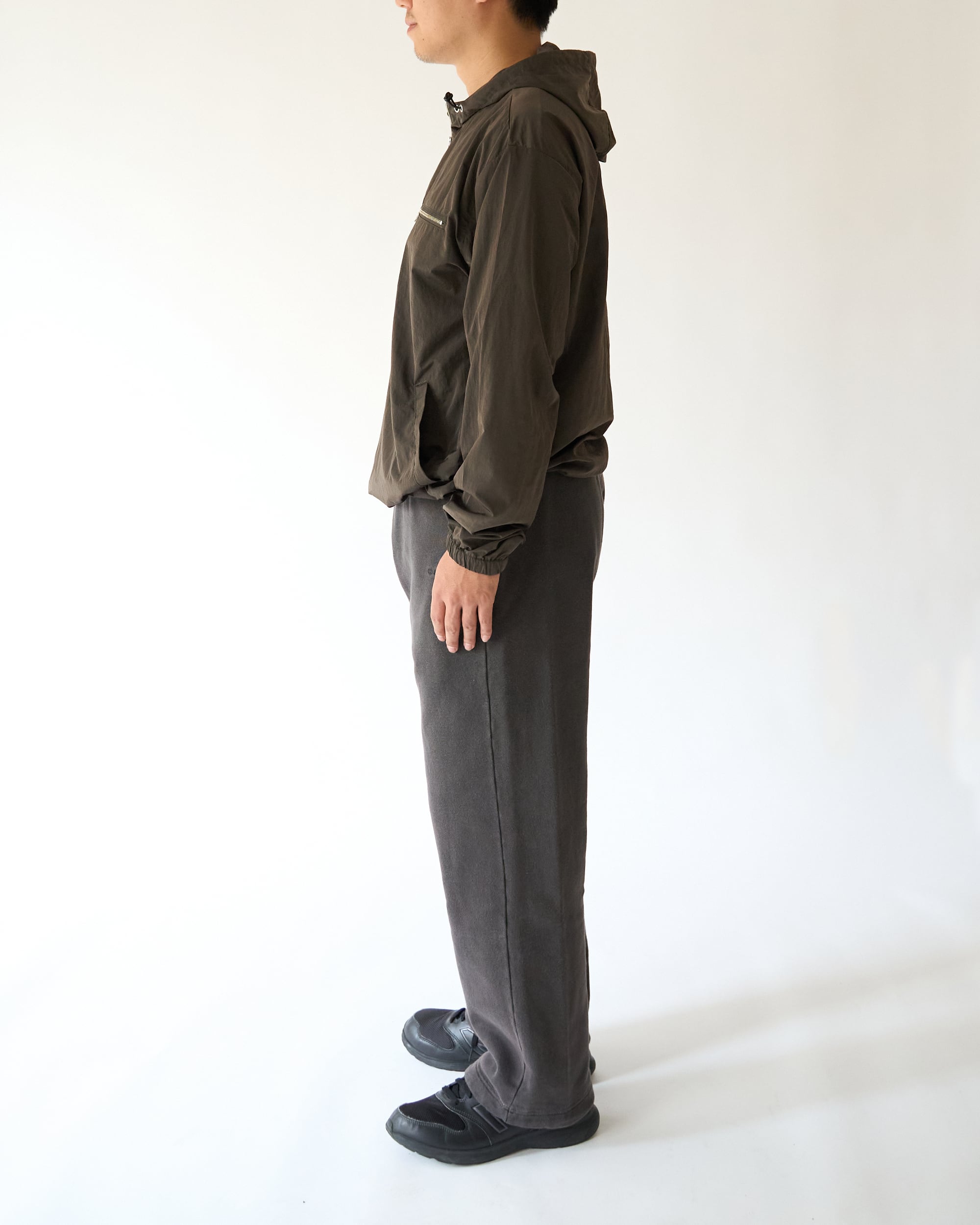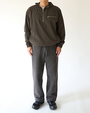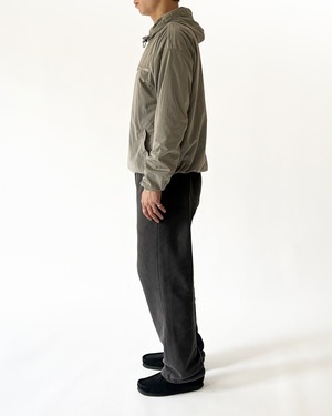 光沢がありながらシワ感を残したメタルナイロン素材を採用したハーフジップアノラック。