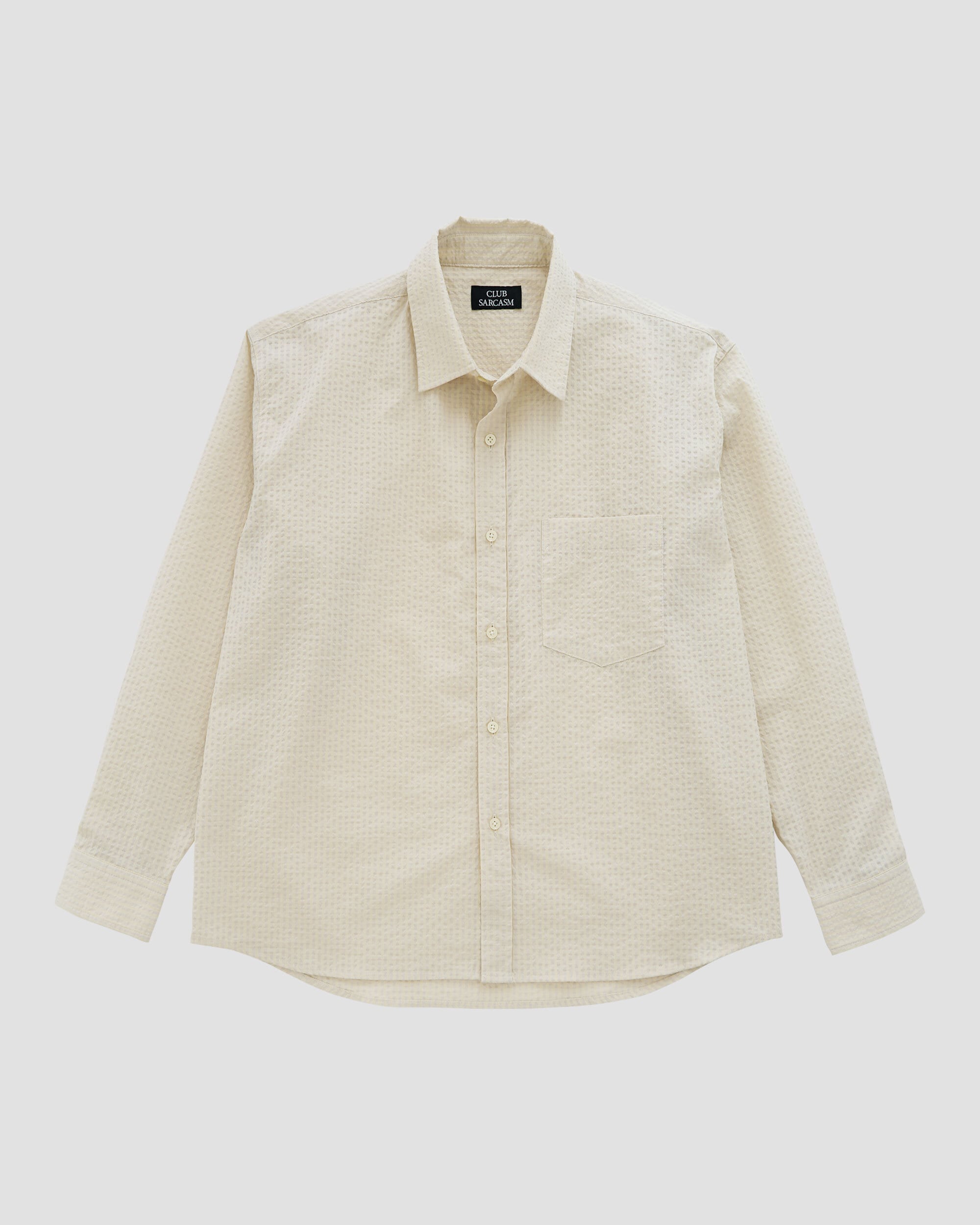 日本製で、通気性に優れた「DotAir」と、吸水速乾機能を持つ「COOLMAX」を組み合わせたサッカー素材を採用し、国内で縫製を行ったロングスリーブシャツ。